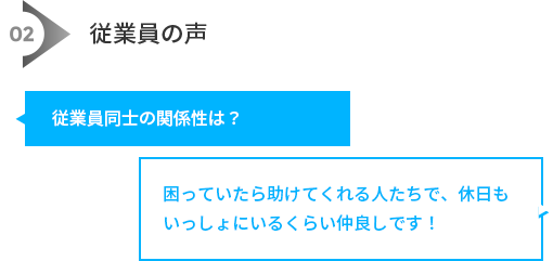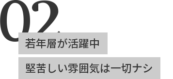 現在当方は20~30代の若い社員で構成されています。年齢が近いこともあり、和やかな雰囲気で楽しみながら仕事を行っています。