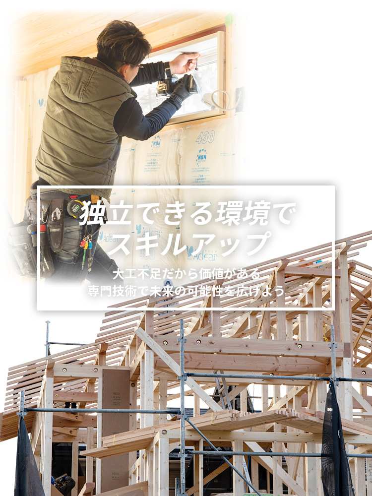 また、化学物質を使用しない『NATURAL SENSE® 無添加住宅』の施工も行っているため、さまざまな工法を習得できます。風通しのよい環境で楽しみながら、一人前の大工になれるようにサポートいたしますので、ぜひご応募ください!